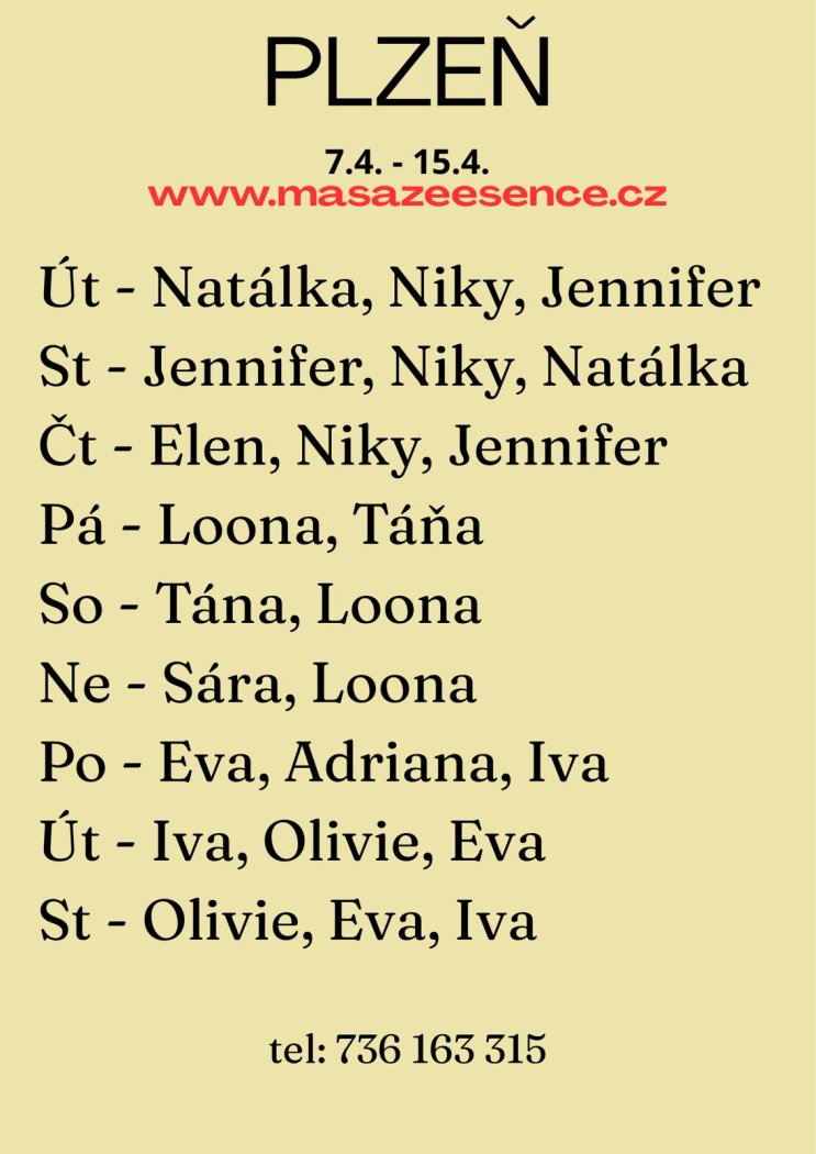 So-čt 4.-9.4 Nová Jenifer (23let)