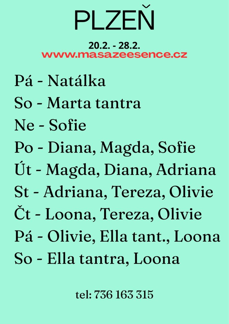 JEDNÁ SE O EROTICKOU MASÁŽ S RUČNÍM VYVRCHOLENÍM. 😍 Je to velice hravá a intimní masáž do které zapojím nejen své ruce, ale i stehna, zadeček i prsa. Extra masáže: BDSM, ZPĚTNÁ MASÁŽ, MASÁŽ LINGAMU, SPORTOVNÍ I RELAXAČNÍ MASÁŽ A DALŠÍ.😍 Pro více informací volej: 736 163 315. MASÍRUJI CELÁ NAHÁ. Postarám se o to, abys změnil každodenní stereotyp a načerpal jsi novou sílu. DOPORUČUJI: délku masáže 60min. a z důvodu hlubšího prožitku 90min.